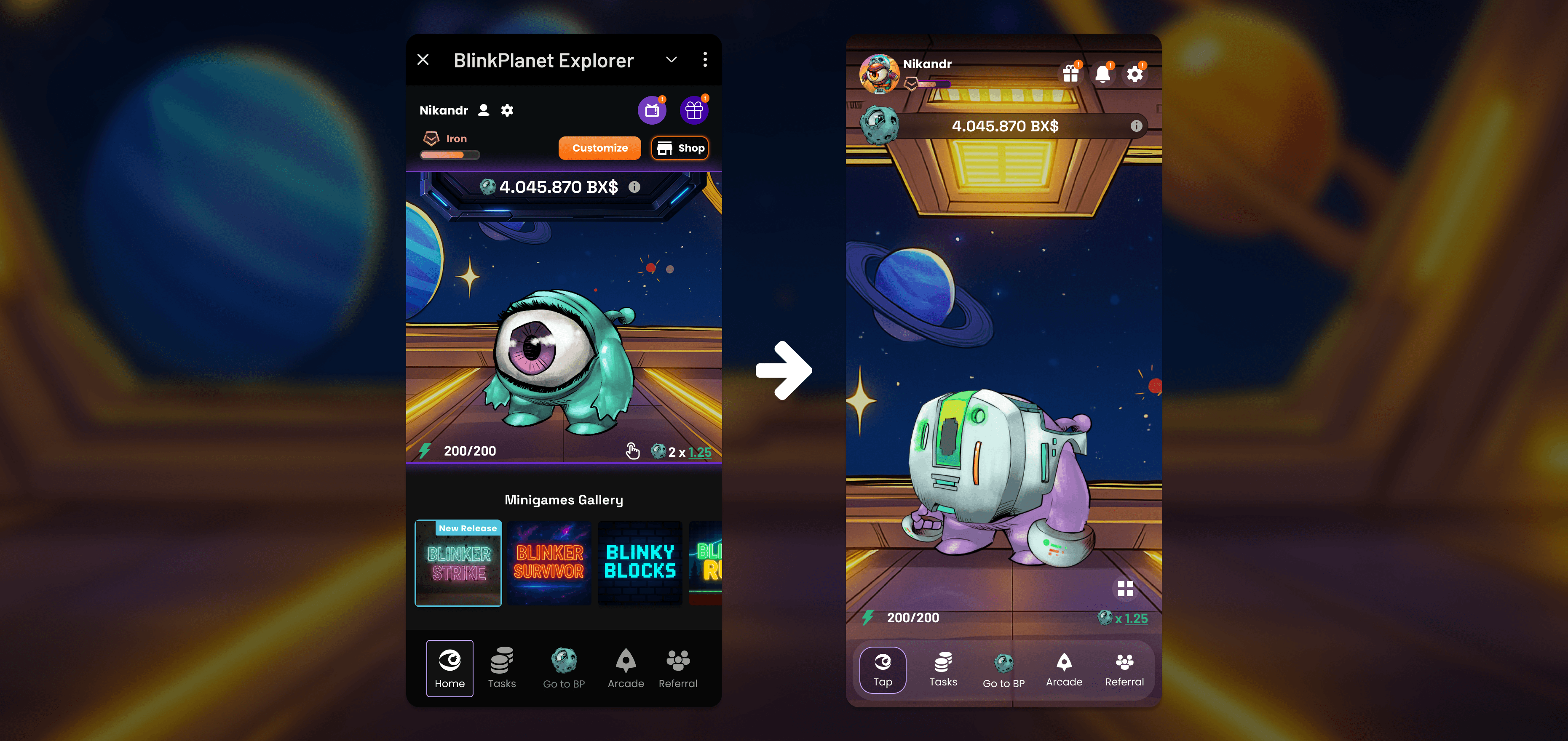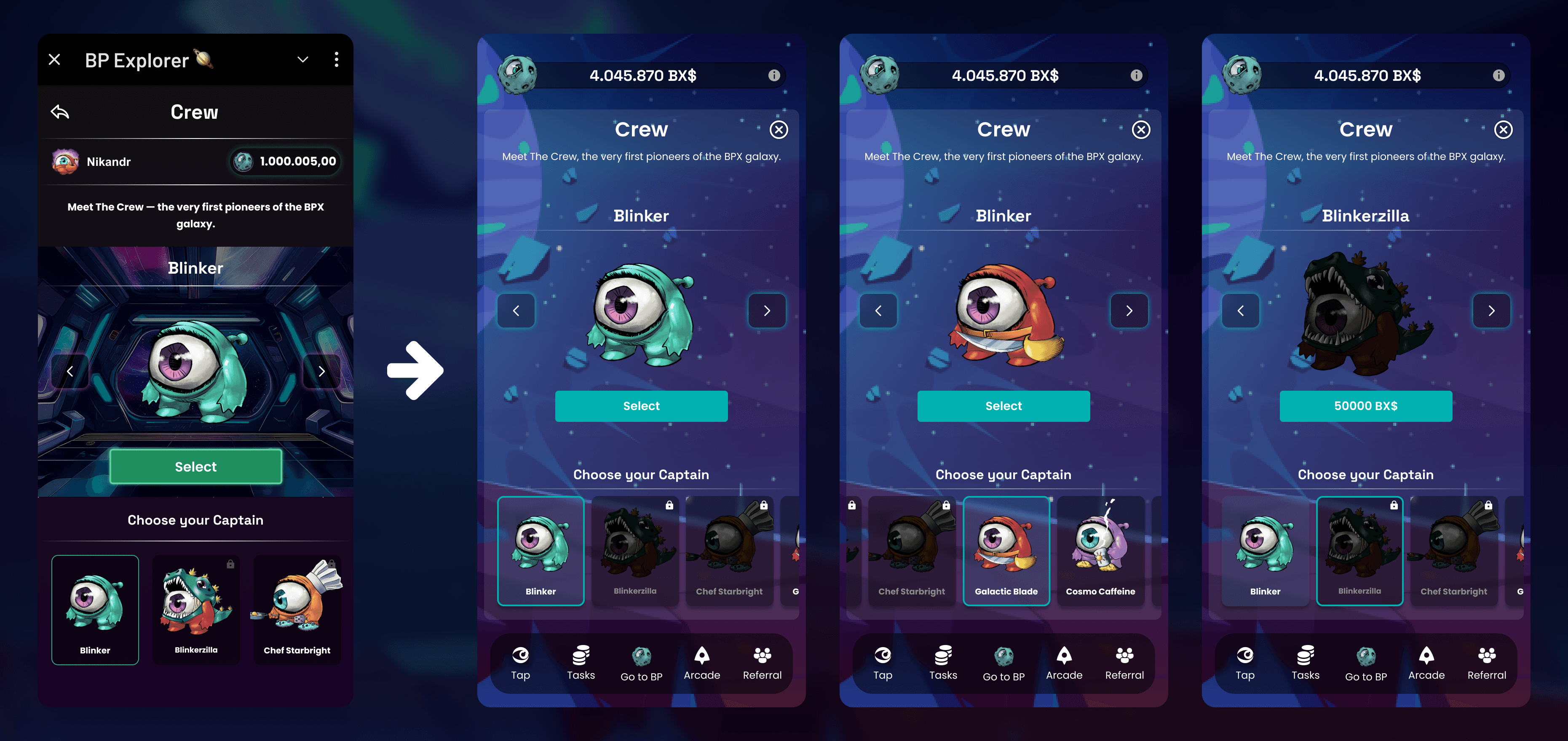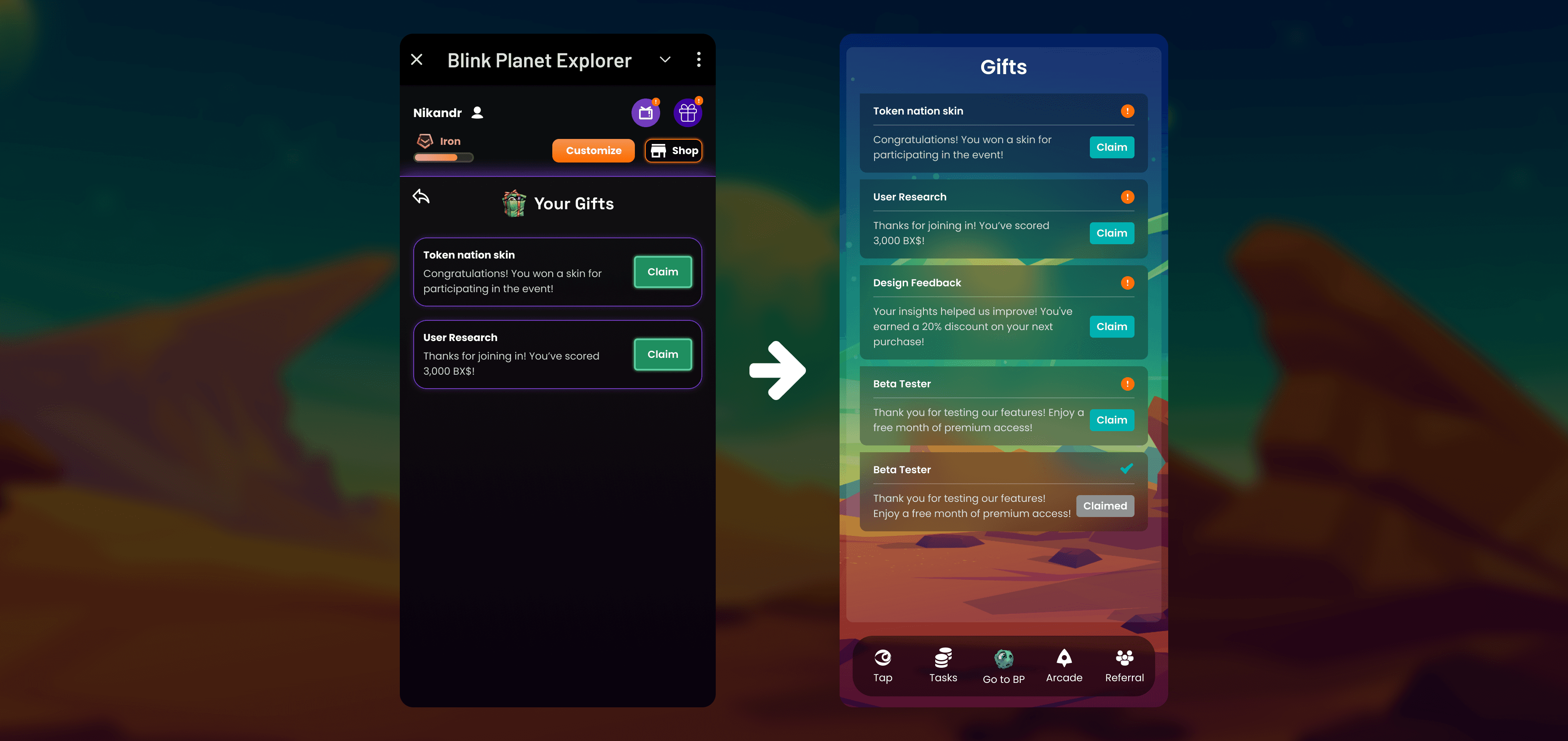As a primary driver for BX$ accumulation, the tasks screen was redesigned with a minimalist approach. We elevated the visual polish and graphic elements to enhance the perceived value of the interface, providing a more premium and refined user experience.