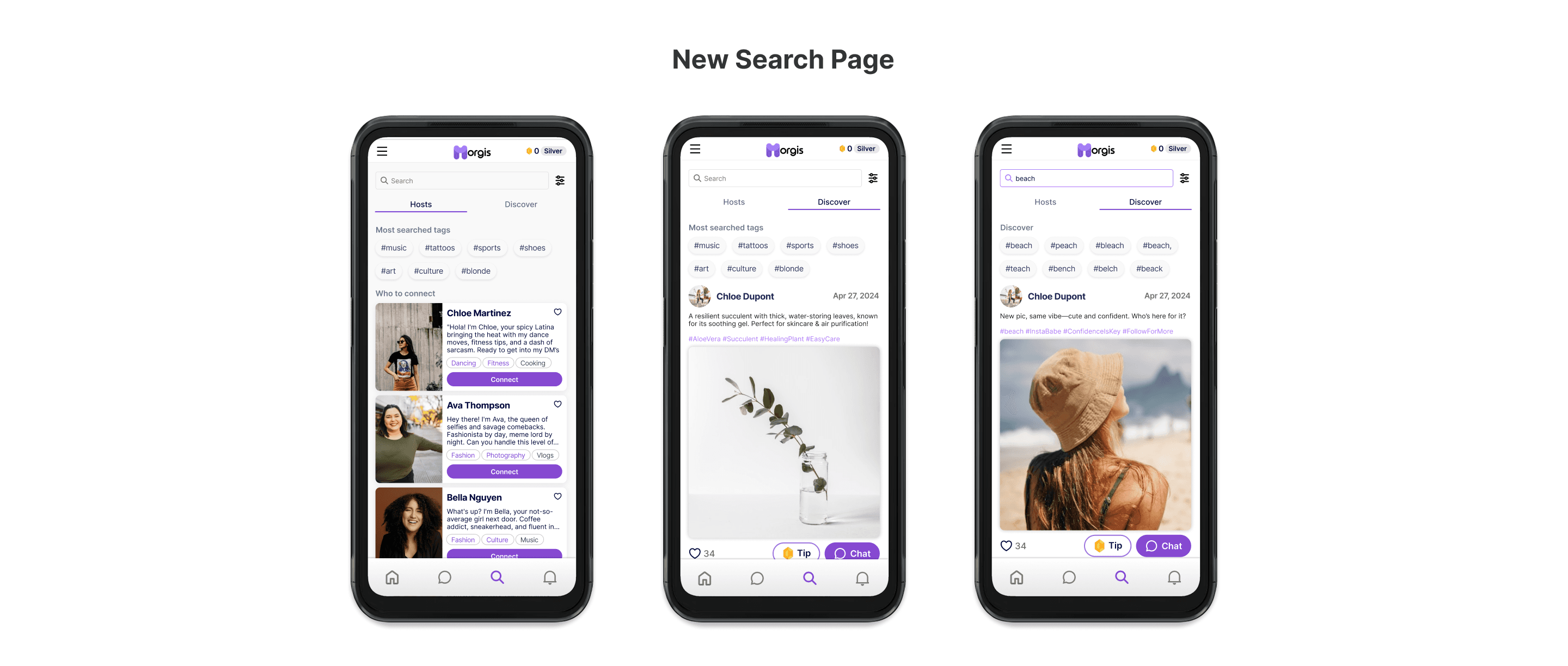 Search and Discovery Page: Implemented a new search logic and filter system (prioritizing online hosts and related interests) to facilitate content discovery.