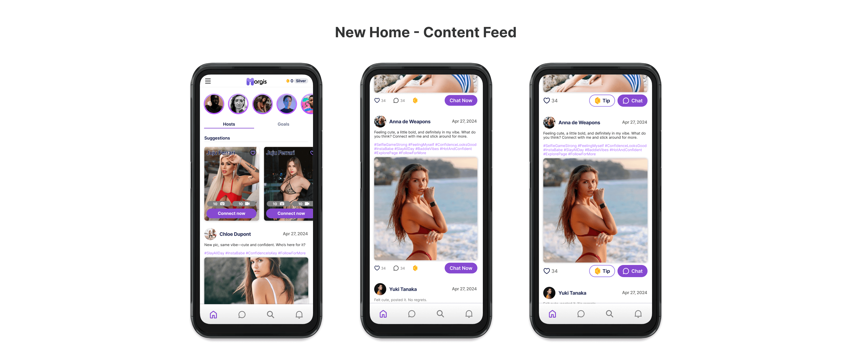 New Visual Feed: Developed a high-fidelity interface focused on media preview and mental triggers (nudity/sensual content) to drive engagement.